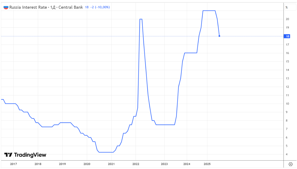 В прошедшую пятницу ЦБ снизил ключевую ставку до 18%, что полностью соответствовало консенсусу и прогнозу аналитиков. Несмотря на то, что снижение ставки по меркам ЦБ достаточно значимое, рынок не дал позитивной реакции на это событие. Индекс RGBI (государственных облигаций) слабо подрос на 0,25%, индекс Мосбиржи (IRUS) даже снизился на 1,26%.