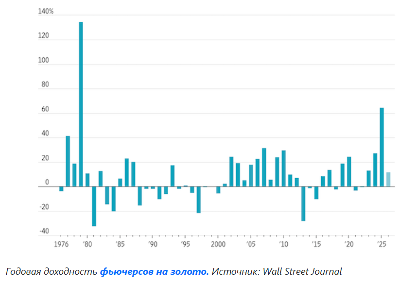 Ралли кормит само себя. Статистика Citi показывает: если золото растет на 20% за год, оно, как правило, продолжает рост и в следующем. После +27% в 2024 году и феноменальных +65% в 2025-м, инерция толкает котировки к заветным $5 000.