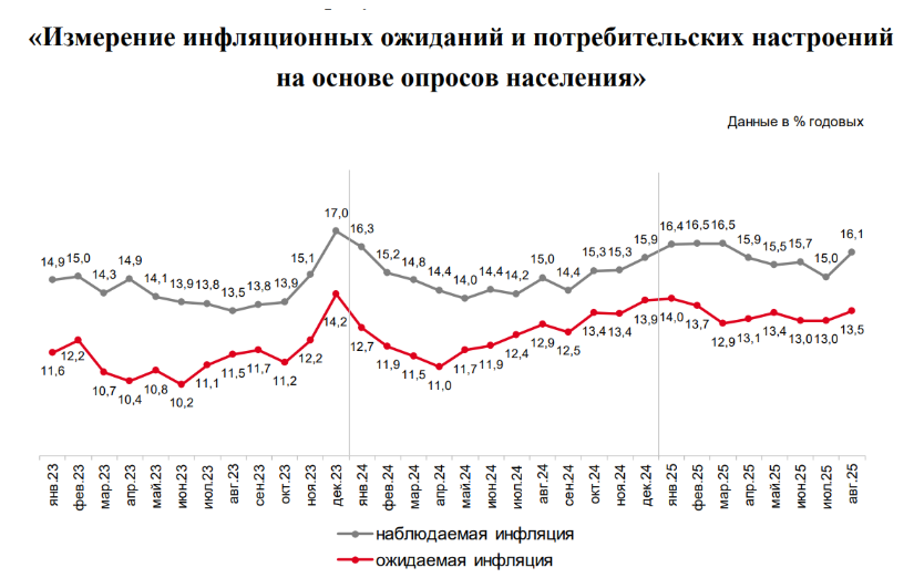 Также стоит обратить внимание на стабильный зазор между серой и красной линиями. Наблюдаемая инфляция, то есть то, как люди ощущают рост цен в магазинах «здесь и сейчас», систематически выше, чем их ожидания на будущее. Это важный психологический момент: население надеется на замедление роста цен, но по факту сталкивается с более суровой реальностью. Для экономики это означает, что инфляционные ожидания остаются не заякоренными, что заставляет регулятора проводить жесткую денежно-кредитную политику.
