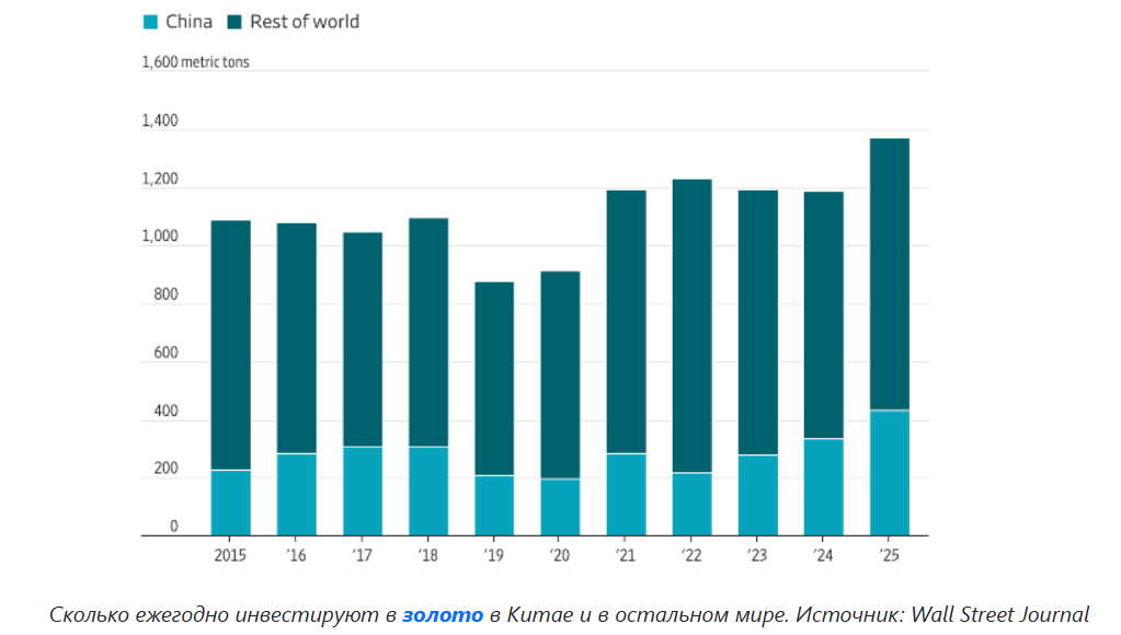 Китайский рынок драгоценных металлов штормит. Как мы видим из сводок Wall Street Journal и данных Всемирного совета по золоту, частный спрос в КНР бьет рекорды — 432 тонны слитков и монет за 2025 год. Это почти треть мирового объема. История учительницы Роуз Тянь, скупающей золотые браслеты на фоне геополитической тревоги, до боли знакома и российскому инвестору.